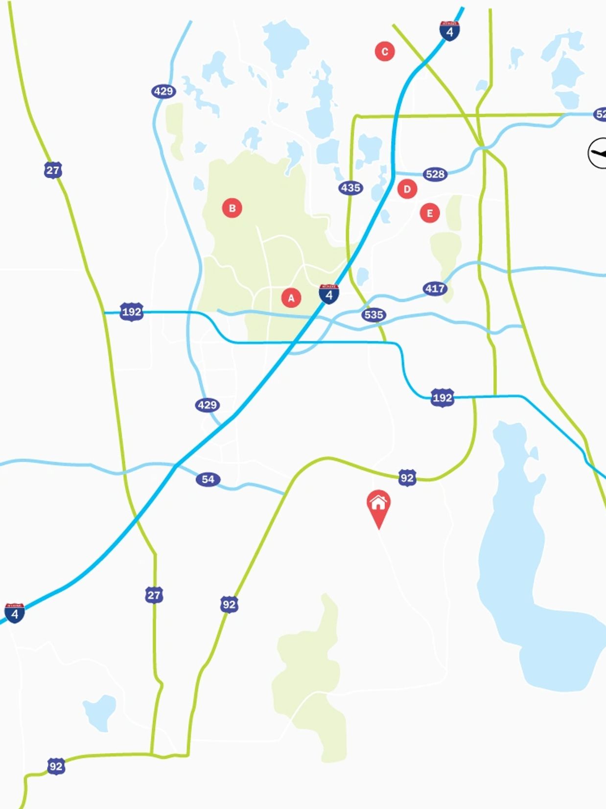 Nearby I4 puts you on the path to Busch Gardens (75-80 min), and Kennedy Space Center (65-70 min). Florida’s award-winning beaches, including Clearwater, Cocoa, Daytona and Siesta Key, can all be reached in as little as 95-100 minutes and make great day trips!
